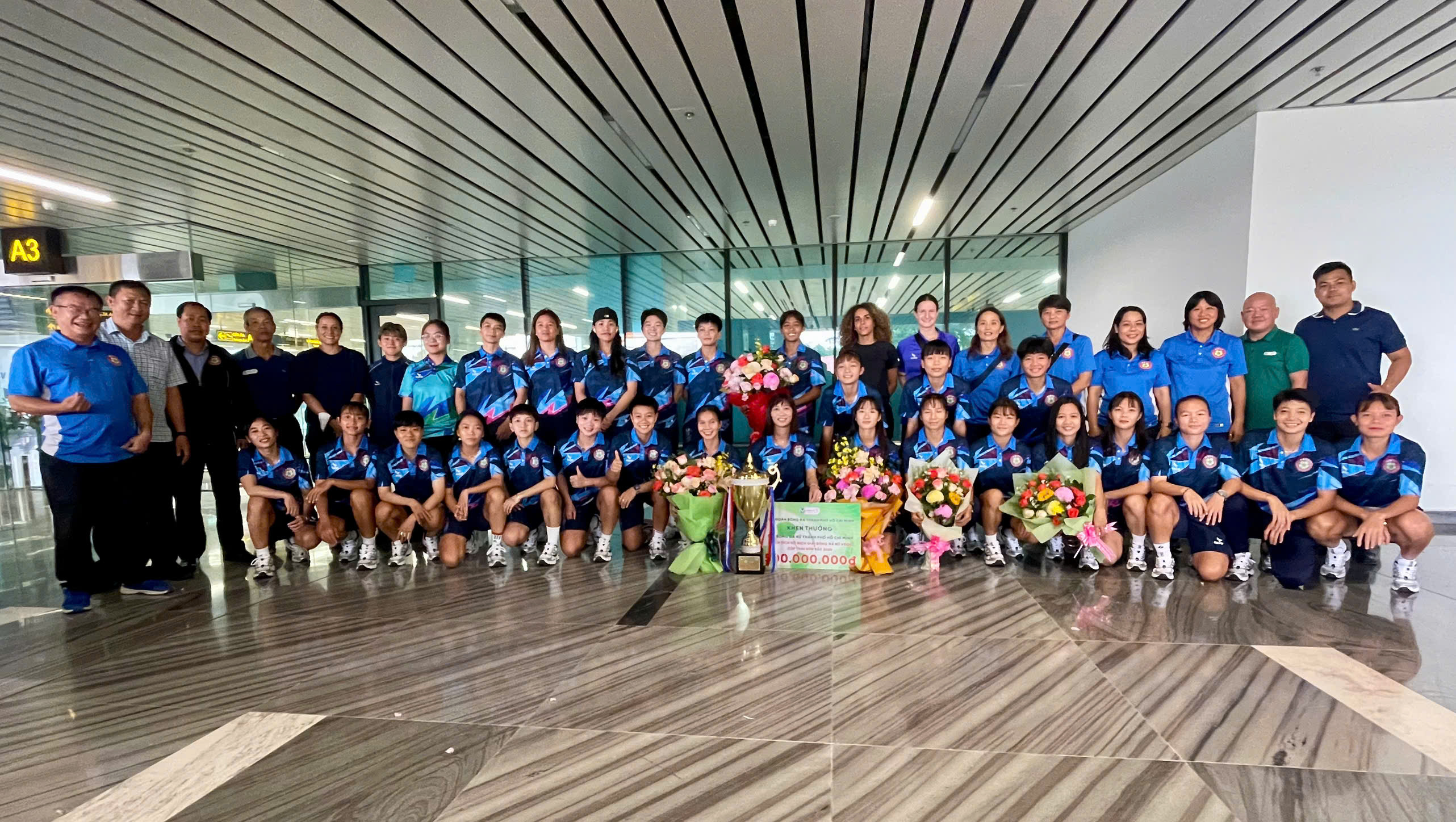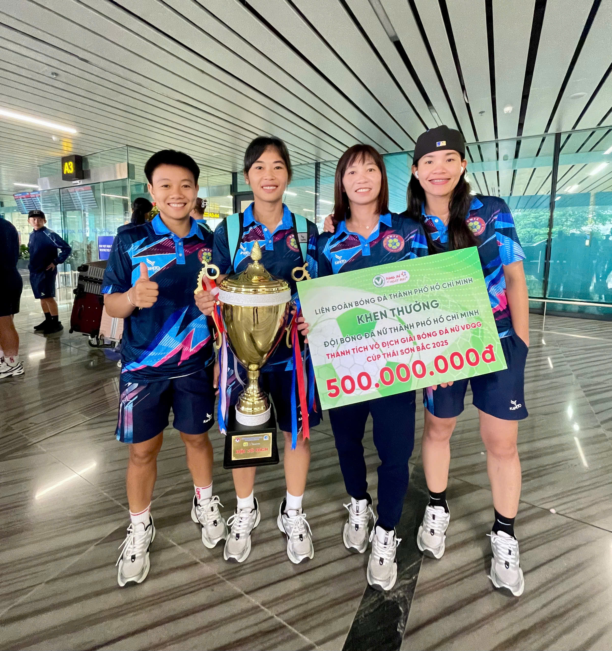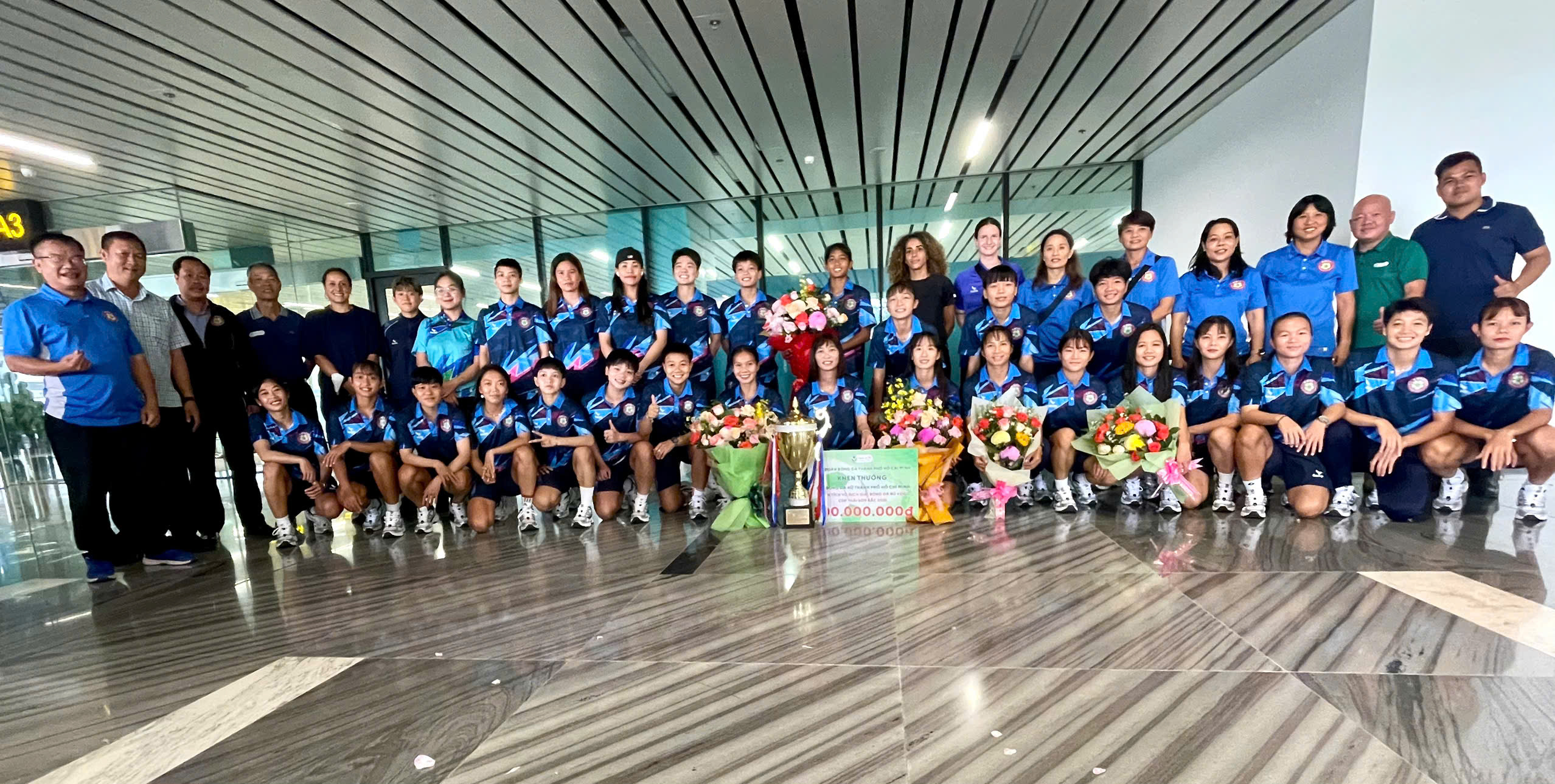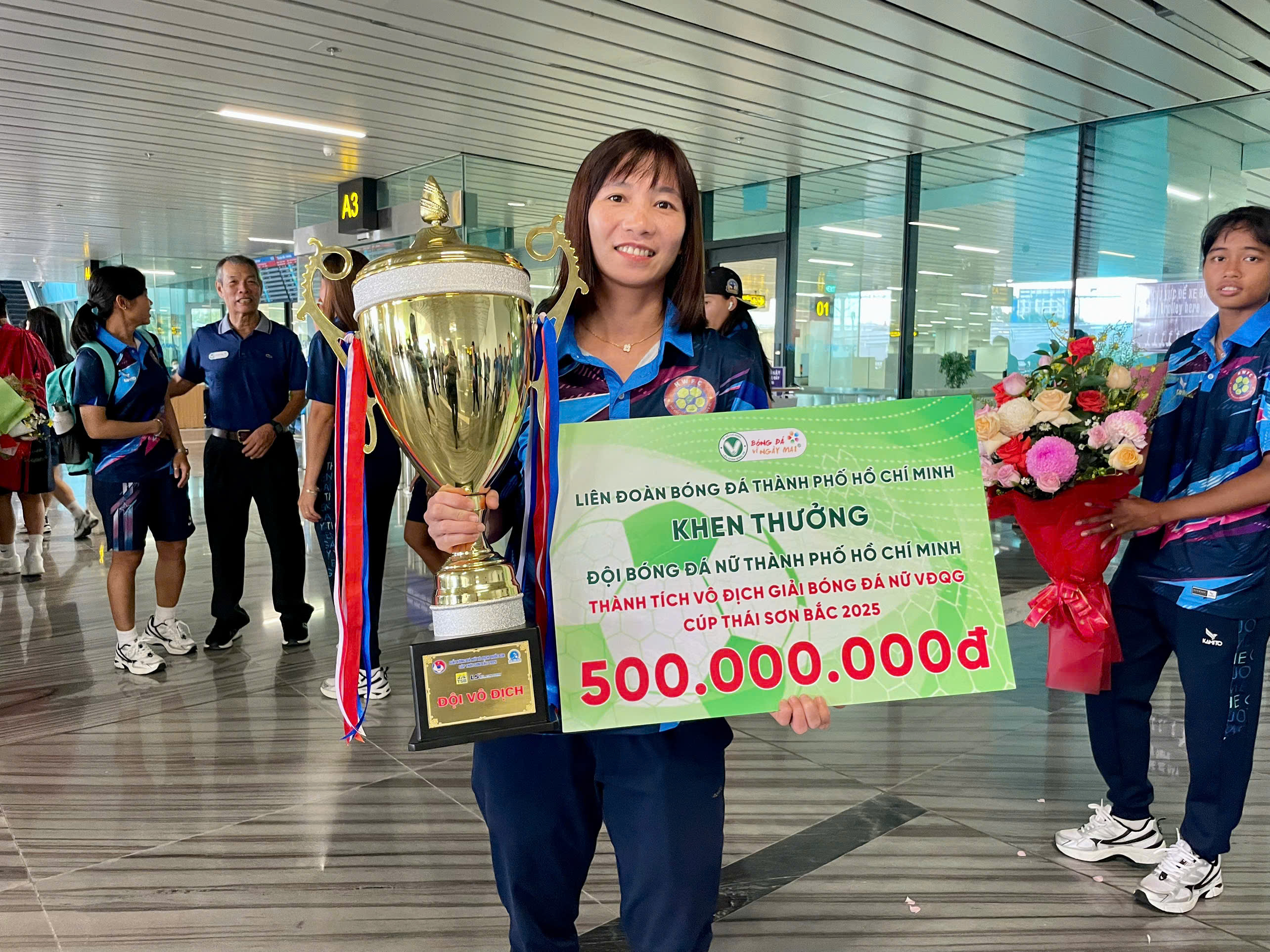 Với thành tích xuất sắc của các cô gái vàng của bóng đá TP. Hồ Chí Minh tạo ra, Liên đoàn Bóng đá TP.HCM đã trao 500 triệu đồng tiền thưởng cho cô trò HLV Đoàn Thị Kim Chi. Với phần quà tri ân đến từ lãnh đạo trong ngày trở về, tất cả các cầu thủ, ban huấn luyện luôn nở nụ cười rạng rỡ ấm áp.